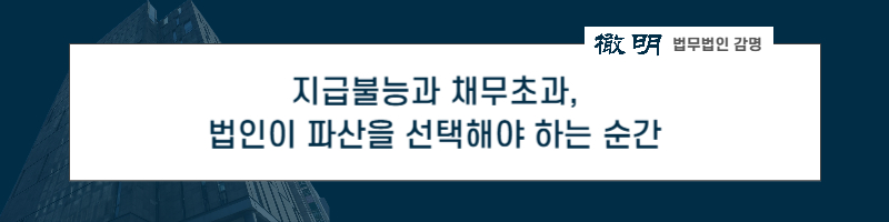 둘째, 채무초과 상태 — 자산보다 부채가 더 많아 더 이상 정상적인 경영이 불가능한 상황을 의미합니다.