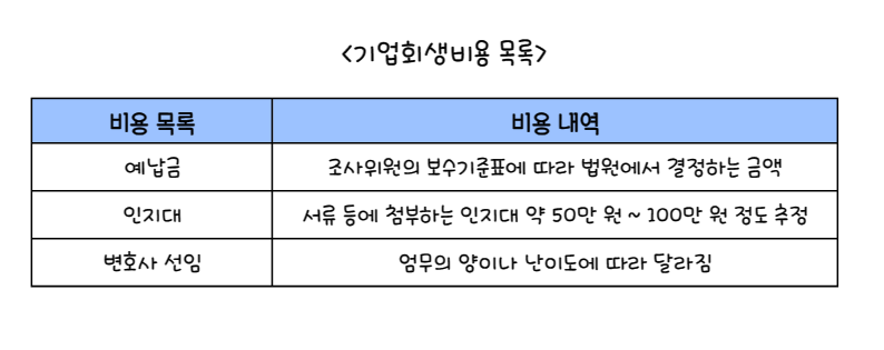 즉, 기업회생비용은 대략적인 범위는 있으나 일률적으로 정해진 금액이 아니라,